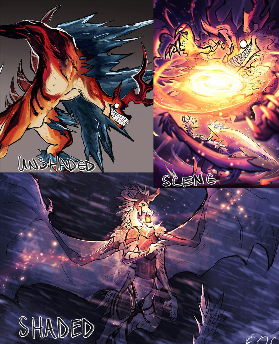Extra character +100% of base price (only unshaded/shaded, no background/complexity fee charged)Lineless commissions are not available in fullbodies either. Able to do ship art, available at extra character fee. Perspective/dynamic pose fees may apply.SCENES - Scenes are a much pricier, dynamic scene of your character. They are ideal for fights, dramatic moments, and ideas you have in your head. Due to the usual excessive back and forth required to draft a scene and poses/perspectives, they will cost +50% of the price. Halfbodies and fullbodies can both be scenes, just alert me of if you’re after a halfbody or fullbody scene.Unshaded example is $70, shaded example is $95, scene example is $270.